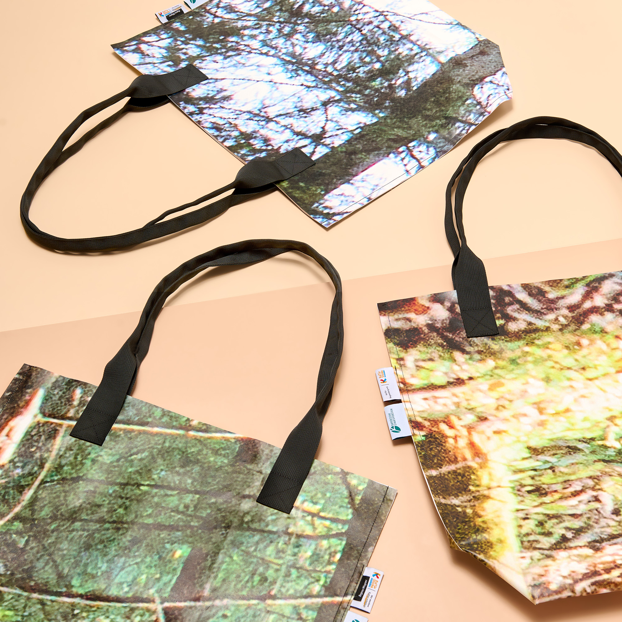 Gemeinsam mit dem KulTür e.V. Regensburg und der Behindertenwerkstatt Regens Wagner haben wir alten Messeplanen mit Waldmotiv ein zweites Leben geschenkt. Aus dem robusten, wetterfesten Material sind große, langlebige Shopper-Taschen entstanden – jedes Stück ein handgefertigtes Unikat.